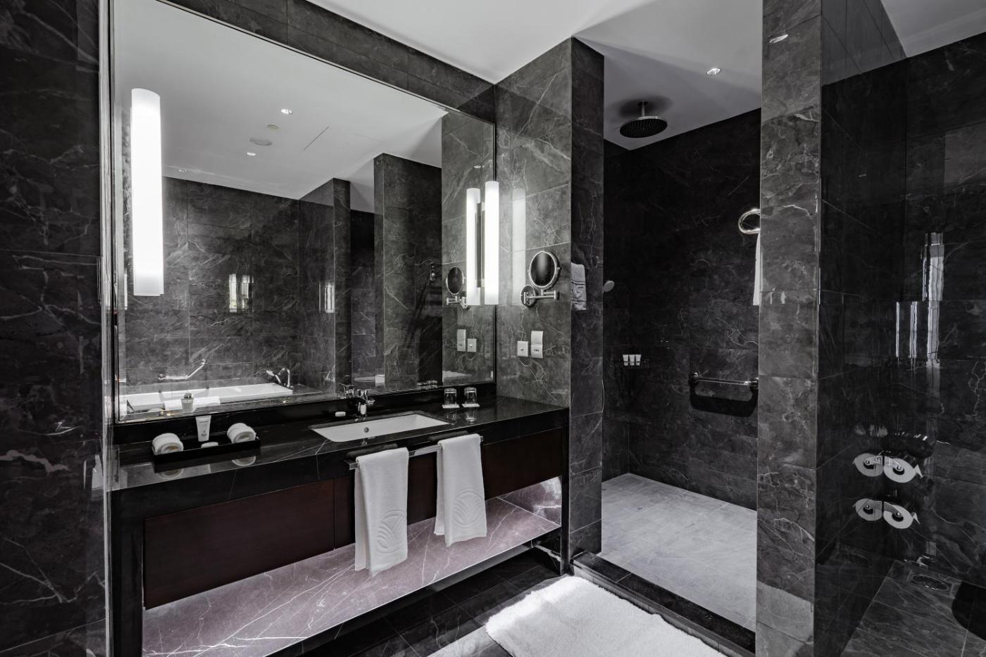 Spacious Sea ViewCity View Room With Lounge Access - King Bed. Providing free toiletries and bathrobes, this double room includes a private bathroom with a walk-in shower, a bath and a hairdryer. The spacious air-conditioned double room provides a flat-screen TV with cable channels, executive lounge access, a seating area, a wardrobe as well as sea views. The unit offers 1 bed. ;